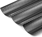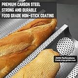 Fasmov - Perforated design allows for the even circulation of heat for a crispy finish Made of food grade carbon steel that is ecofriendly for strength and durability Professional quality non stick coating and dishwasher safe Perfect for all uses including making rolls sourdough bread french bread baguettes and buns Pack of 2 french bread baking pan measures 15x 96x 098 each gutter width of this italian bread pan is 275