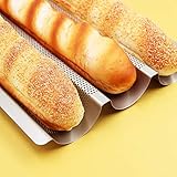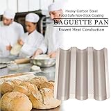 Widely applicable the baguette pan is perfect for all uses including making rolls sourdough bread french bread baguettes and buns Tips a very slack dough like a noknead dough may get stuck in the pans perforations We advise using a stiffer rather than softer dough in this pan Commercial grade made of food grade carbon steel for baking is heat resistant and ecofriendly Baguette bread pan is nonstick perforated design allows air to circulate freely around the dough creating a light airy interior and a crisp goldenbrown crust