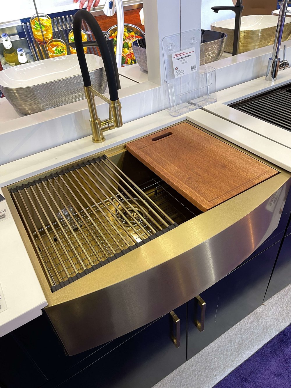 Normally, we think of The Galley sinks, as the king of workstation sinks, but there are more brands doing these now. I saw several at KBIS, one quite elaborate 57” model from Ruvati. It’s an Italian company, but I was told they stock in Austin, TX, so that is really convenient for me! I could even drive over to Austin and pick one up!