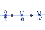 Stretchy portable clothes drying line ideal for outdoor and indoor occasions such as camping hiking or traveling Includes one blue portable clothesline with one blue storage bag and 5 compressed cotton towels