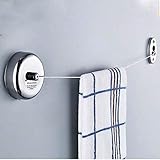 CALIDAKA - Retractable extendable design with retractable wires Use it when you need it and quickly reels up when not in use High weight capacity the chromeplated unit finish and rope will last for years even in a setting with moisture in the air like the bathroom 7×7 strands of stainless steel wire braiding Bearing range is about 1525kg10kg Easy to install punchfree Just mount onto your wall with provided mounting accessories and its ready to use
