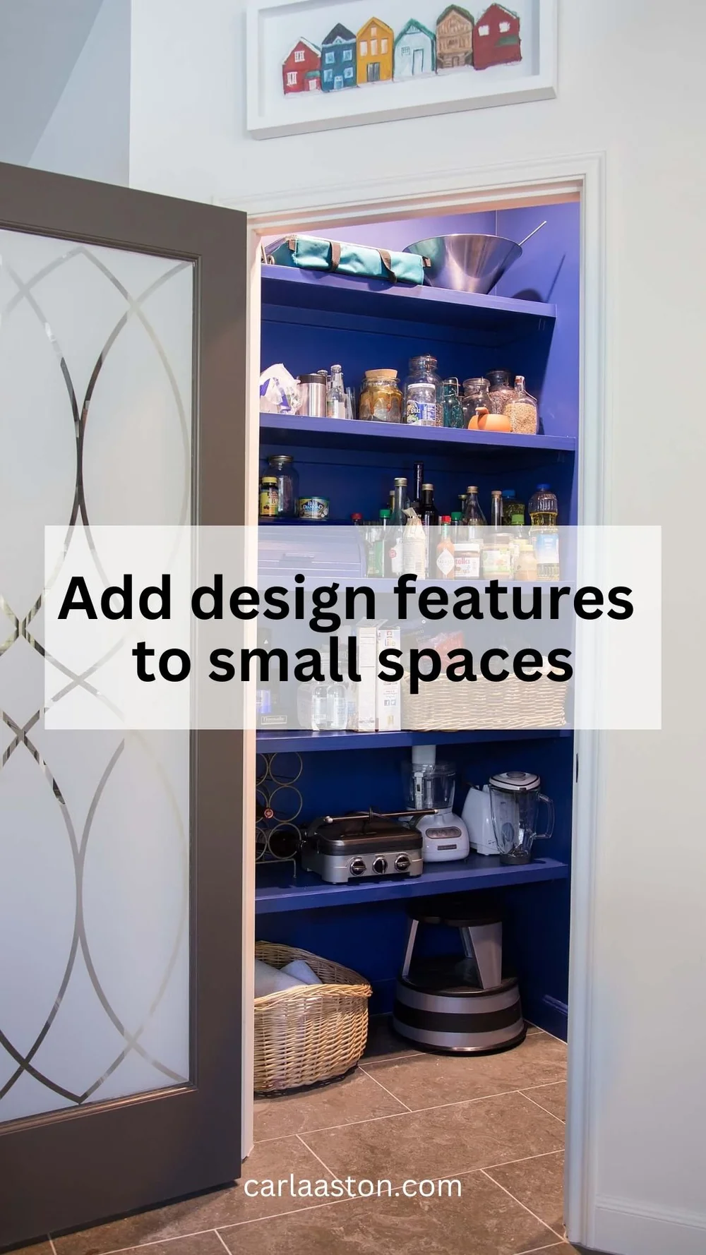 I had my pantry painted indigo blue, my favorite color. carlaaston.com