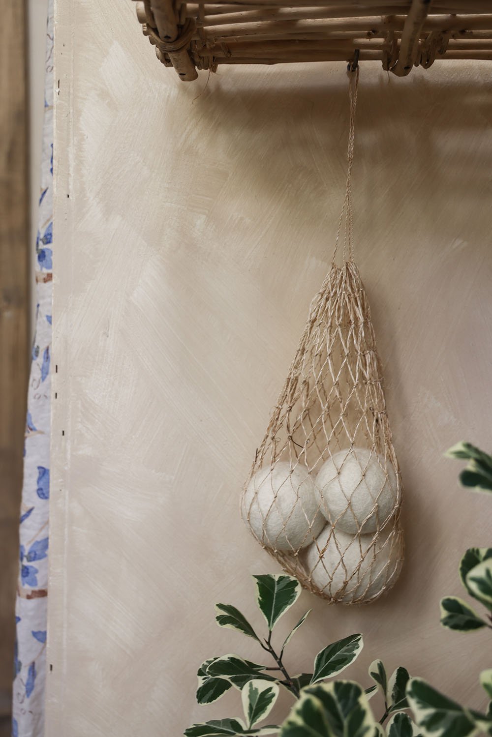 My eye fell upon an old French bread cooling rack that was dangling decoratively on our kitchen wall, waiting to serve a new purpose. It’s the kind of willow and reed shelf once used in a French boulangerie for supporting freshly-baked loaves of bread while allowing oxygen to flow around them. This was THE PERFECT size and design for what I had in mind by the washer-dryer. But what would I need to mount it, and keep it flat against the wall?
