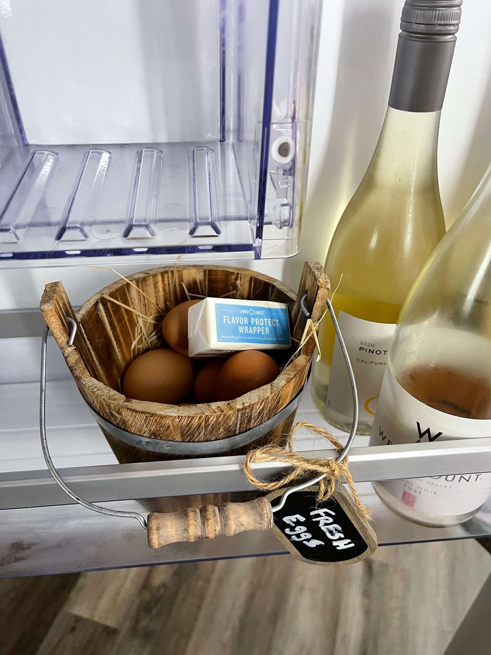 The refrigerator was stocked with filtered water, fresh eggs, butter and some sweet cream for coffee. That was so nice, especially since we came in late the night before. (The iced coffee and wine were ours! :-)