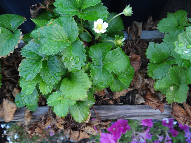 Strawberries, still (very) surprisingly bringing forth fruit!