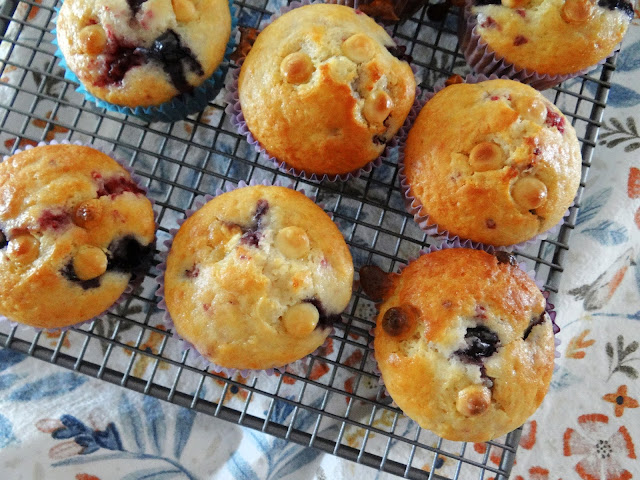 Last Friday I had Blossom and the children come spend the day and Cully May requested "Could you make blueberry and raspberry muffins please, Nana?"