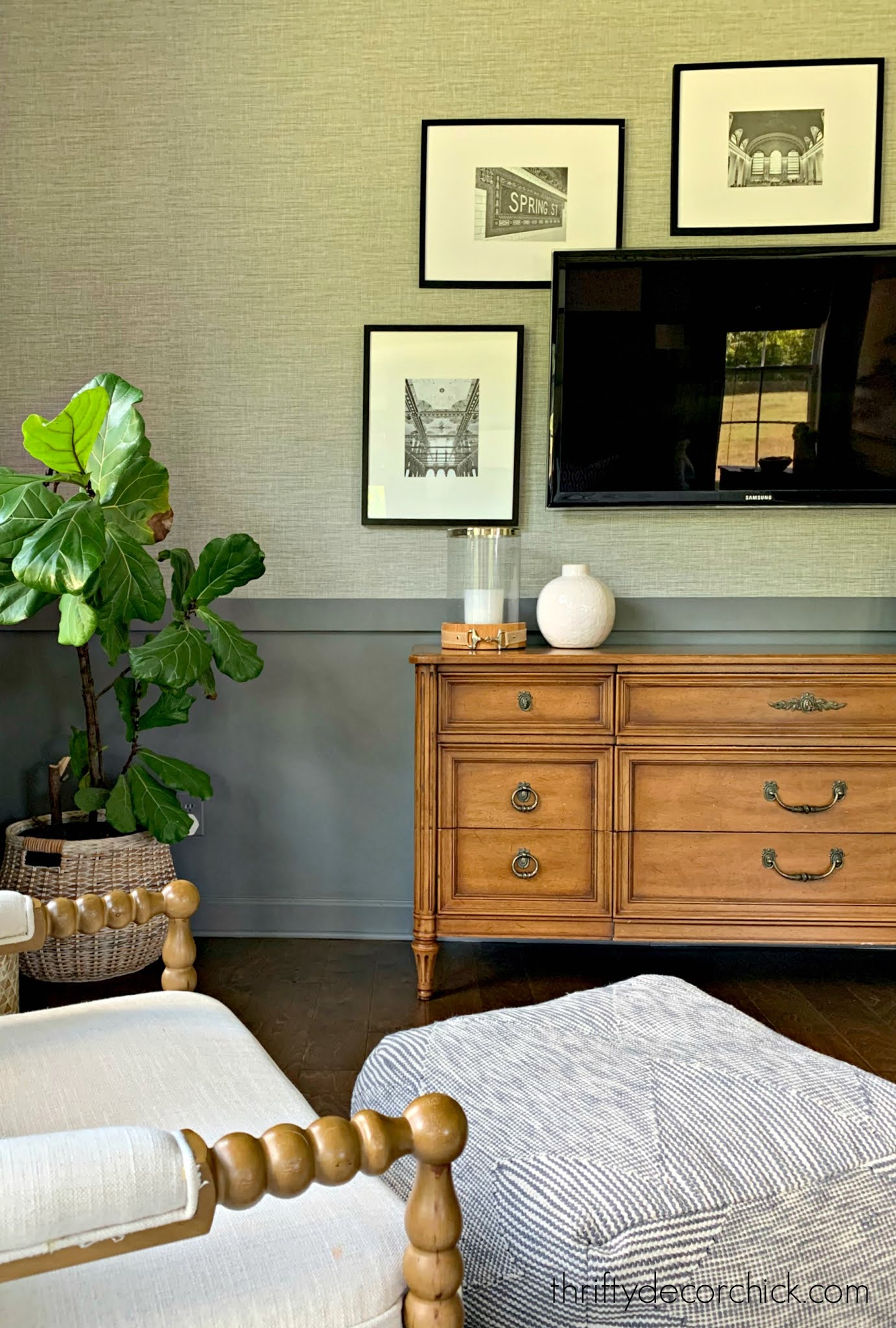 The peel and stick grasscloth wallpaper went a LONG way to cozying up this space! It feels like a hug when you walk in here: