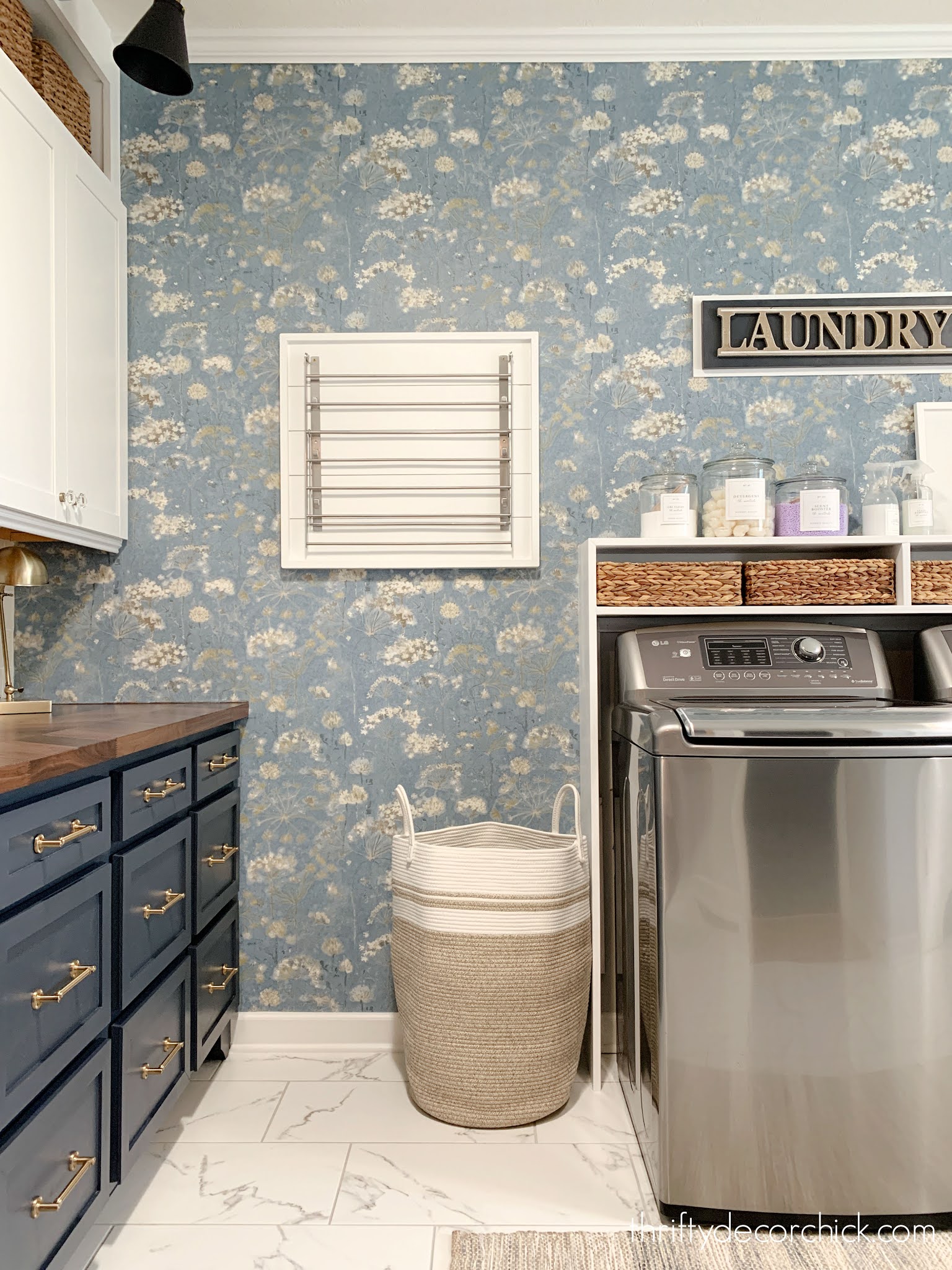I thought the only place to buy this blue and white floral wallpaper was at Anthropologie, and it was seriously expensive! Thankfully I was able to find it under a different name online for much less.