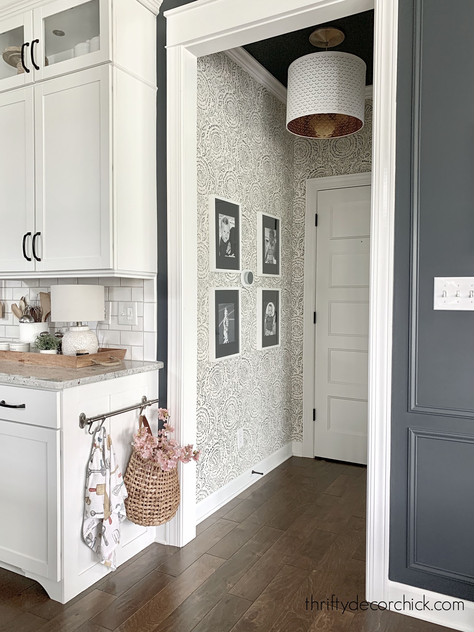 I love dressing up small spaces like powder rooms and hallways! They are the perfect spot to go a little more dramatic, since they are so small. I did just that in this little hallway off our kitchen: